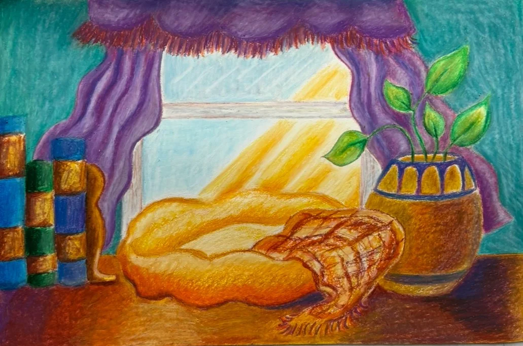 Probably the most difficult of all of the pieces in this show to complete. If you have lost a pet, you know that loss creates a different kind of sorrow. Their passing is more bittersweet, maybe because animals cannot speak to tell us what they need at the end. But, I sense that they too pass on to a more golden tomorrow, and maybe we’ll see them all again someday.