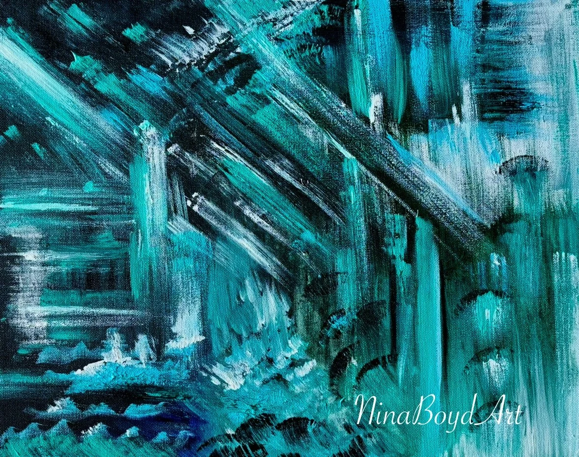 Painted in a music fueled frenzy. I was not sure what to title it until I began rotating the piece, trying to determine which way to hang it. I realized that at its final orientation, it becomes less abstract and a whole scene emerges....